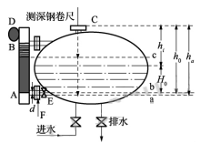 c)用測(cè)深鋼卷尺測(cè)量從測(cè)點(diǎn)到水面間的距離ha ,實(shí)際零位空高h(yuǎn)0=ha-D/2,此狀態(tài)即液位計(jì)測(cè)量零點(diǎn)。