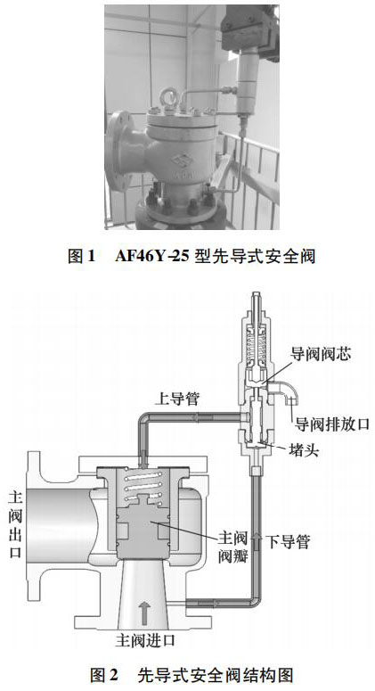 磁翻板液位計常見的故障包括: 主閥導閥泄漏、導閥超壓不動作、主閥未隨導閥動作。主閥導閥泄漏失效原因: 密封面臟污或損傷,零部件卡阻、密封墊圈老化變形; 導閥超壓不動作失效原因: 導閥密封面銹蝕粘合或材料變形、導閥彈簧過緊或卡阻、導閥下導管堵塞; 主閥未隨導閥動作失效原因: 主閥運動卡阻、導閥排氣量過小。然而,安全閥起跳不回座故障在試驗過程及工業現場也是非常常見的,國內對于磁翻板液位計起跳不回座失效分析的相關研究較少。本研究以某公司生產的 AF46Y-25 型磁翻板液位計為研究對象,研究導閥結構并分析其動作過程。在對其開展動作性能試驗時,發現該安全閥實際回座壓力遠低于標準要求,排放時間過長,回座失效。因此,對其進行受力分析,以探討回座失效的原因。