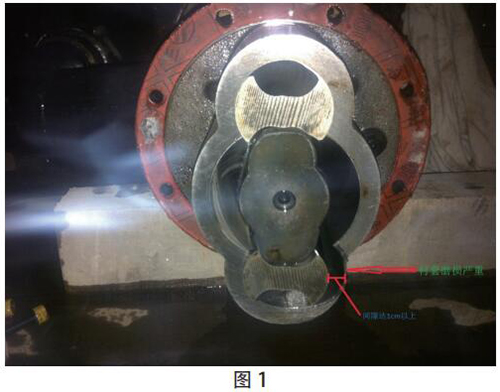 2015 年 8 月 10 日 17:50 機組在運行過程中“機組高位油箱事故低油位動作”事故停機。現場檢查發現機組高位油箱油位為 60mm,低于下限值 90mm。進一步檢查發現,稀油站 2# 低壓油泵空轉,沒有打油,振動、聲音較大。18:18 維護人員對 2# 低壓油泵進行了搶修拆解。發現油泵從動螺桿與襯套間隙過大,達 1cm 以上,襯套磨損嚴重(見圖 1)。油泵損壞,無法打油。