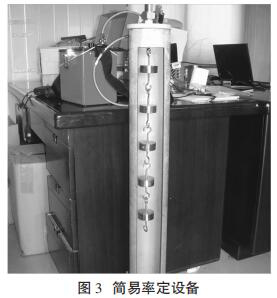 采用一根鋼制桿下端連接一個砝碼,砝碼重量必須為 300g,每個砝 碼采用懸掛式方式加入,每增加一個砝碼,讀數一次。簡易率定法速度很 慢,效率*低,無法適用于大批量設備的率定。