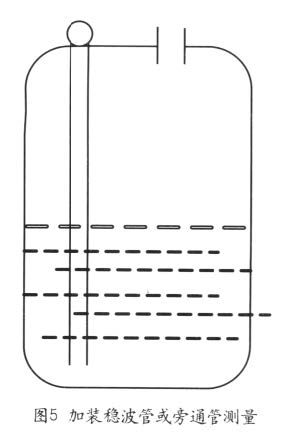 雷達(dá)液位計(jì)是按“俯視式”時(shí)間行程測量原理進(jìn)行工作的,用于測量探頭安裝處到液位表面的間距。其結(jié)構(gòu)非常簡單,主要由儀表外殼、過程連接和短桿天線組成。天線起始處有一將脈沖延遲發(fā)射100mm或250mm的屏蔽管,以確保測量不受安裝接管處冷凝或粘附的影響。其測試原理見圖1。