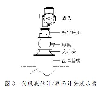 2.3 界面儀表界面測量方式:1)采用伺服界面計,安裝示意如圖3所示;