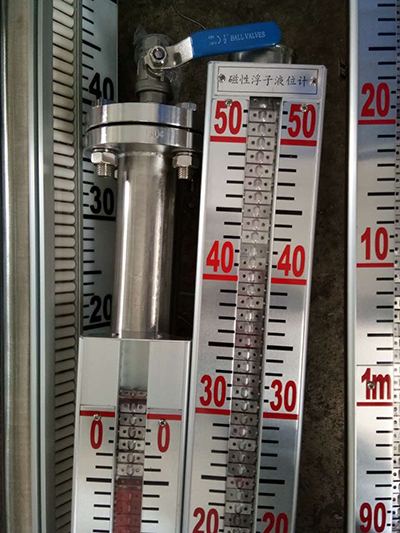 根據(jù)浮力原理,浮子在測(cè)量管內(nèi)隨液位的升降而上、下移動(dòng),浮子內(nèi)的永久磁鋼通過(guò)耦合作用,驅(qū)動(dòng)紅、白色翻柱翻轉(zhuǎn)180°,液位上升時(shí)翻柱由白色轉(zhuǎn)為紅色,下降時(shí)由紅色轉(zhuǎn)為白色,從而實(shí)現(xiàn)液位指示。