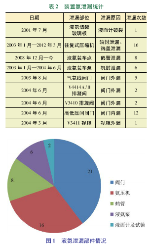 根據(jù)裝置長期運轉(zhuǎn)紀(jì)錄,泄漏部位的統(tǒng)計情況列于表2。液氨泄漏部件占比見圖1。